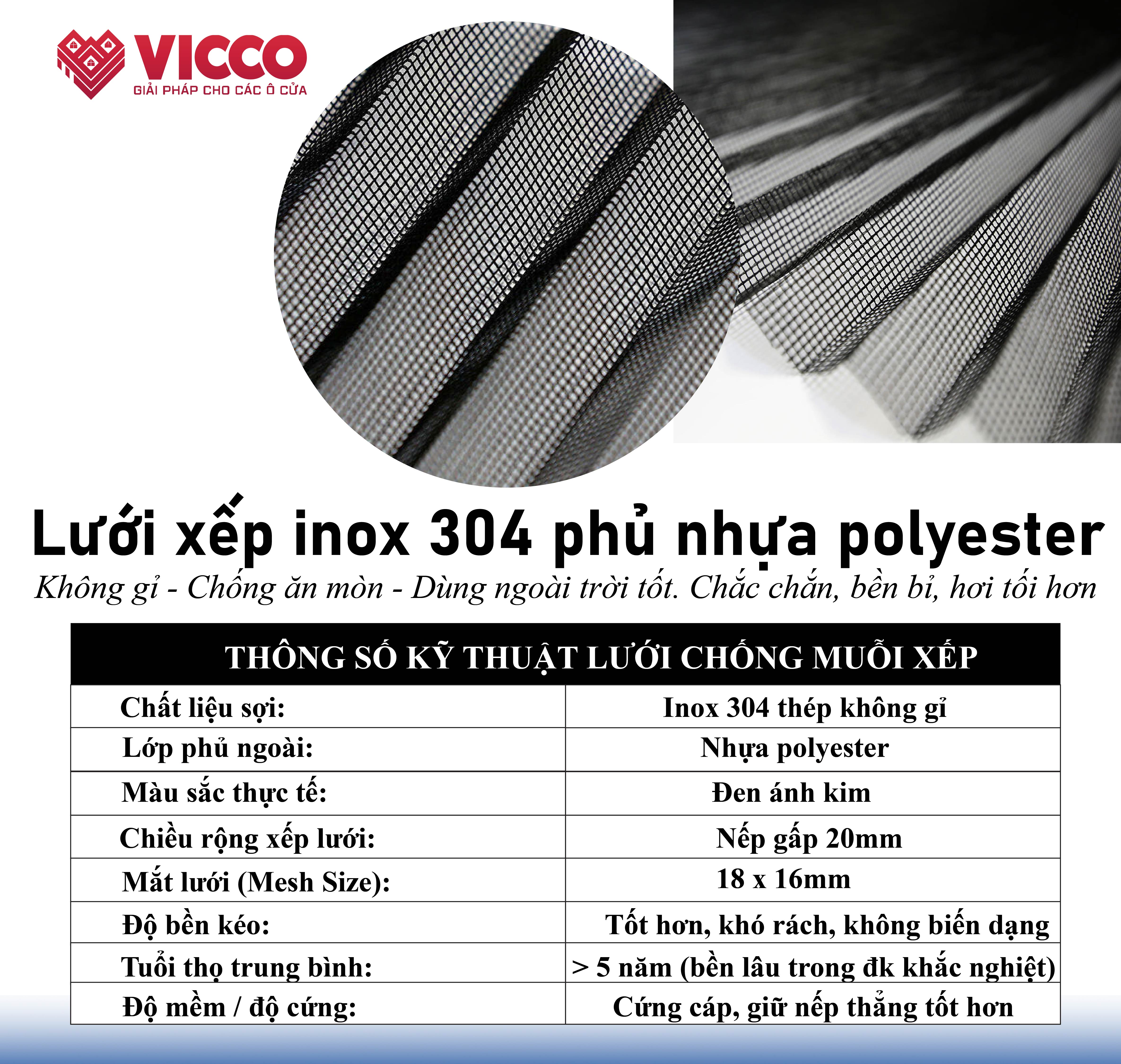 Chất liệu lưới: Lưới xếp nếp lõi inox 304, chống gỉ, độ bền cao.